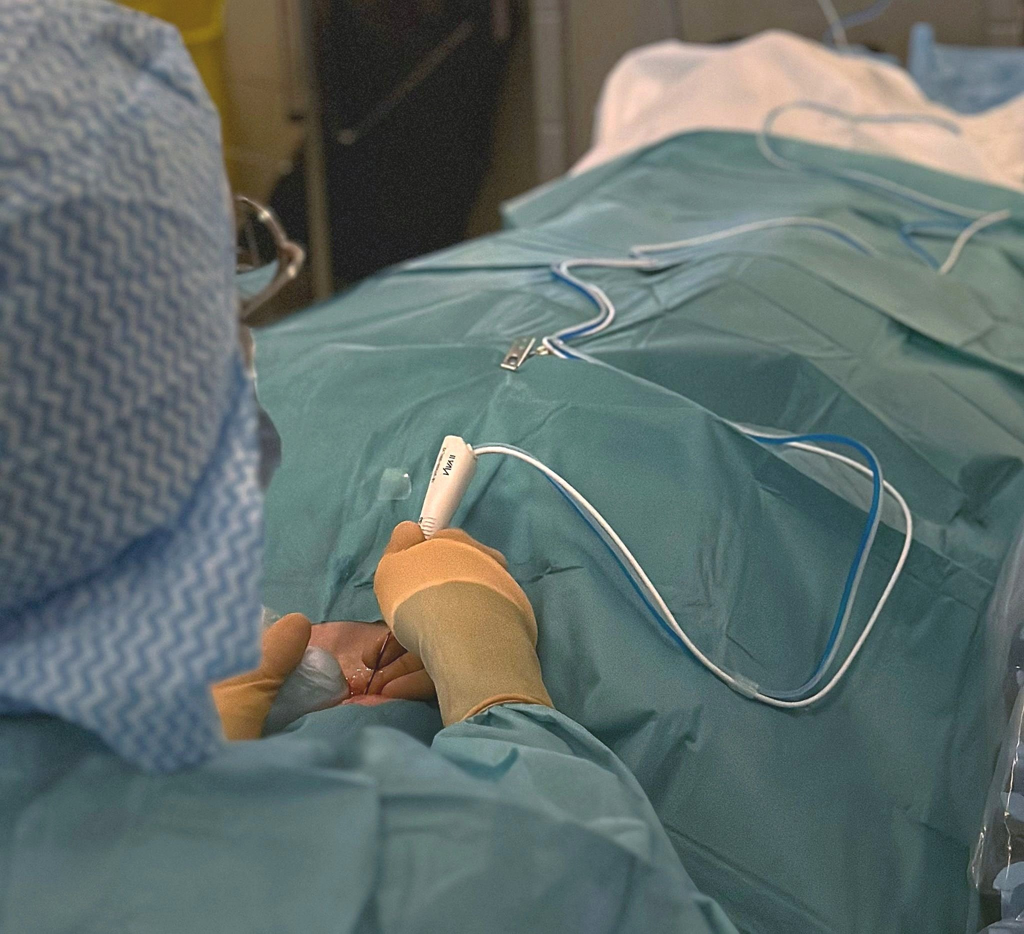 Le médecin introduit une fine électrode sous guidage échographique précis continu, permettant de traiter spécifiquement le nodule sans endommager les structures avoisinantes. La chaleur délivrée provoque une dévascularisation immédiate du nodule.